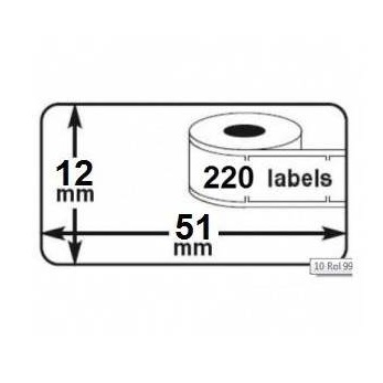 Thermo eco etiketten / labels, afmeting 50x12 mm geschikt/compatible voor Dymo Label Writers. Alternatief voor Dymo nummer 99017. 220 Etiketten per rol. Per rol verpakt in transparante folie. Dymo 99017 labels zijn compatible met de onderstaande labelprinters: Dymo LW 310, Dymo LW 320, Dymo LW 330, Dymo LW 400, Dymo LW 400, Turbo Dymo LW 400, Duo Dymo LW 450, Dymo LW 450 Turbo, Dymo LW 450 Twin Turbo, Dymo LW 450 Duo, Dymo LW 4XL, Dymo LW Draadloos Niet compatibel met printers uit de 550-serie en 5XL.