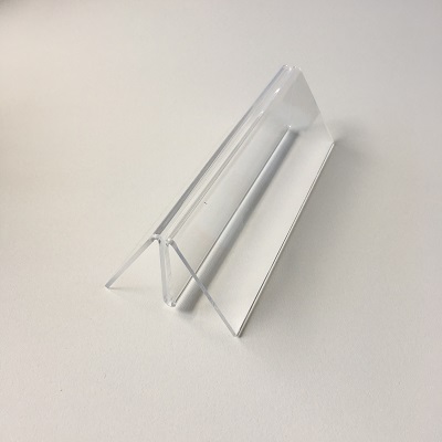 Menu-standaardje 15 cm breed, kaarthouder met 6cm brede voet, hoogte 4cm. Transparant acrylaat. - type M