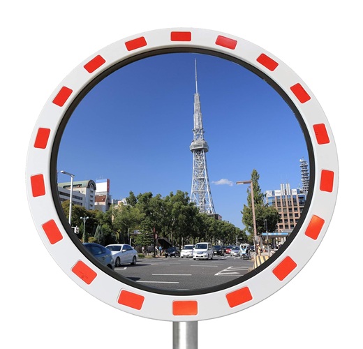 The Traffic mirror is ideal for congested areas like roads, car parks and warehouses. It is available in two different versions according to the degree of high impact resistance desired. The Traffic mirror is made of acrylic, mounted with a black PVC gasket and a white high –impact frame.