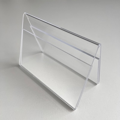 Acryl-dakstandaard breedte x hoogte 105x74 mm - A7. Dit standaardje is aan 2 zijden te vullen, voor- en achterzijde.