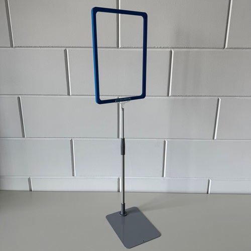 Standaard A4 blauw raam met transparant T-stuk, verstelbare aluminium buis en metalen grijze voetplaat. Verstelbaar/ uitschuifbaar van 32 tot 58 cm. Dit is voor ons een samengesteld artikelnummer uit 4 andere artikelnummers. Bij >Gerelateerde artikelen< kunt u de huidige voorraad zien. Samengesteld uit artikelen: 120104.. 12017594 12017595 12017602 Verkoopprijs totaal € 11,77 excl.btw.