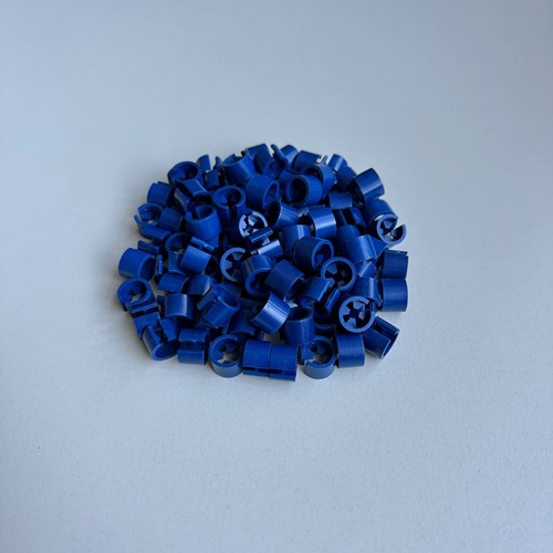 Minimarker onbedrukt donker blauw, verpakt in zakjes met 100 stuks. Diameter 13mm, hoogte 10mm. Geschikt voor kledinghangers met diameter van 2,5 tot 3,5mm.