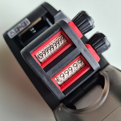 Prijstang Etika 2/16 - nieuwste model prijstang 2-Regelige prijstang. Afdruk op de bovenste regel maximaal 10 cijfers en op de onderste regel een prijs met €999,99. of een 6 cijferig nummer. Benodigde etiketten beginnen met artikelnr. 27183... Passende inktrol is artikel 99279040. Deze tang wordt ook wel verkocht als Avery PL2/16 PL2-16