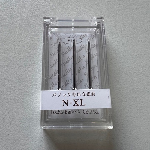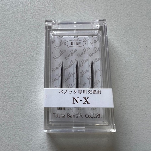 Naald fijn Banok, N-X (fine), doosje met 3 stuks. Geschikt voor Banok 503 X. Totale lengte van deze naald is 25 mm, dikte 1,5 mm. Japanese Made. Materiaal All Steel.