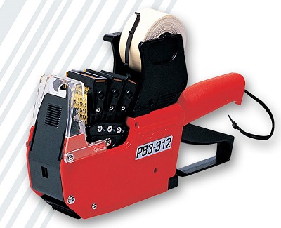 2-Regelige prijstang. Afdruk op de bovenste keuze uit 13 teksten HACCP, en op de onderste regel een prijs met €9999,99 of datum print.