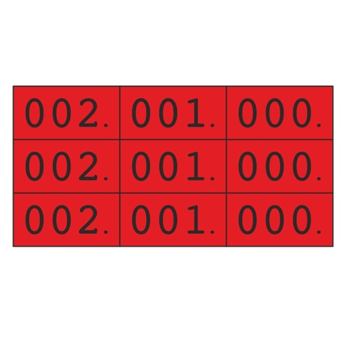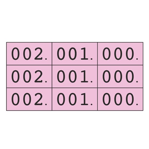 Schoen-gelijkheidsnummers roze / rose 3x nummer 000-999 afmeting etiket 10x22 mm.