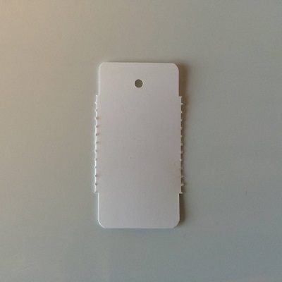 Hangetiket op rol 30x58 mm smal op de rol, blanco onbedrukt 1000 per rol, wel ponsgaatje, en geen perforatie in kaartje. Confectielabel geschikt om met een textieltang en riddersporen/textielpins aan kleding te schieten. - Afmeting: 30x58mm - Materiaal: karton - Gat/oog: 3,5mm diameter - Rolbreedte: 30mm - Aantal per rol: 1.000 stuks - Perforatie tussen labels: ja - Perforatie in het label: nee - Kleur: wit blanco - Bedrukking: - - Kwaliteit: 220 gram/m2 - Kerndiameter: 76mm - Prijs per: 1 rol - Verkocht per: 1 rol Wat zijn de voordelen? Het zijn stevige hanglabels, per rol van 1.000 stuks, voorzien van perforatie tussen de labels. Zijn universeel bruikbaar en het oogje zorgt ervoor dat een textielpin eenvoudig aangeschoten kan worden. Om prijs aan te duiden aan een kledingstuk, jeans of ander textiel.